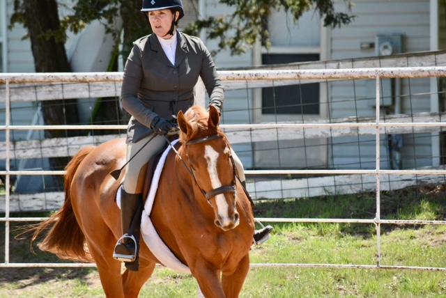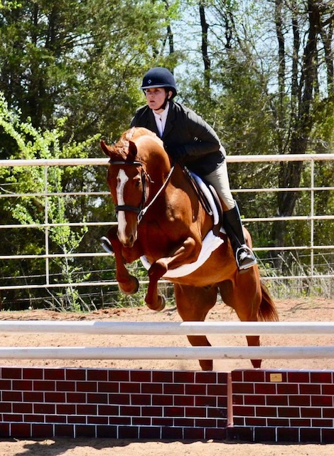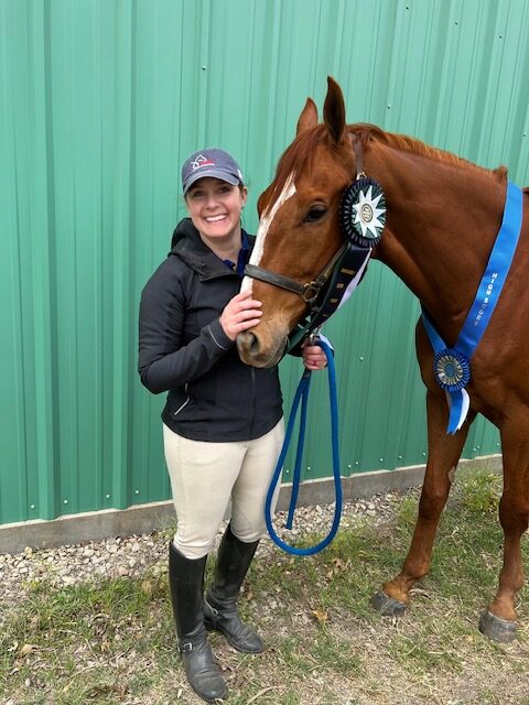 As part of their regular protocol, Thoroughbred Athletes provides their rescue Thoroughbreds with an opportunity to undergo retraining for a fresh career. As a result, Pioneerofan Empire received some under-saddle training before joining Anna. That training combined with his thirst for knowledge made the transition into a new program very easy. Anna admitted she experienced “ups and downs” in their initial riding sessions. It takes a while for horses and riders to adapt to one another’s styles, personalities, and quirks. The pair continued to work together, and Anna noted gradual improvement as they arrived on the same page.
