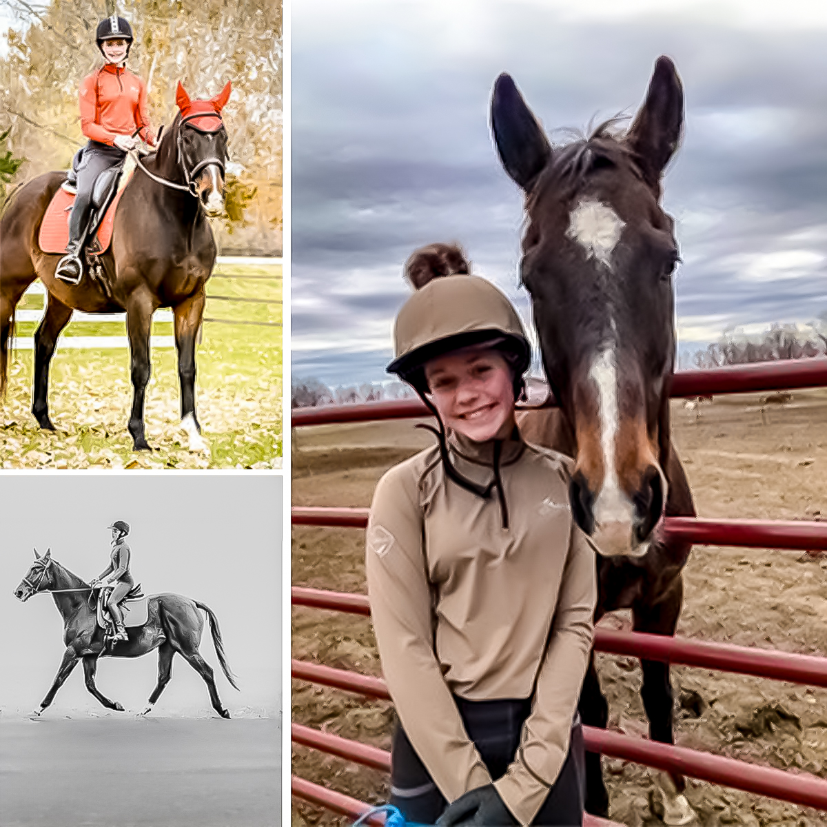 In the spring of 2021, Charlotte Qualley and her mother Betsey attended the Iowa State Fair. At the fair, they noticed Hope After Racing Thoroughbreds (HART), a Thoroughbred Aftercare Alliance accredited organization. They conversed with the HART representatives about horses that were available for adoption, and discussed which horse would be the most suitable match for the mother-daughter duo. They were primarily focused on a horse for Charlotte, but were interested in a horse they both could ride. Part of the criteria for a horse was one that could grow and develop alongside Charlotte. A horse that wasn’t too young or green” and that would help Charlotte become a better rider.