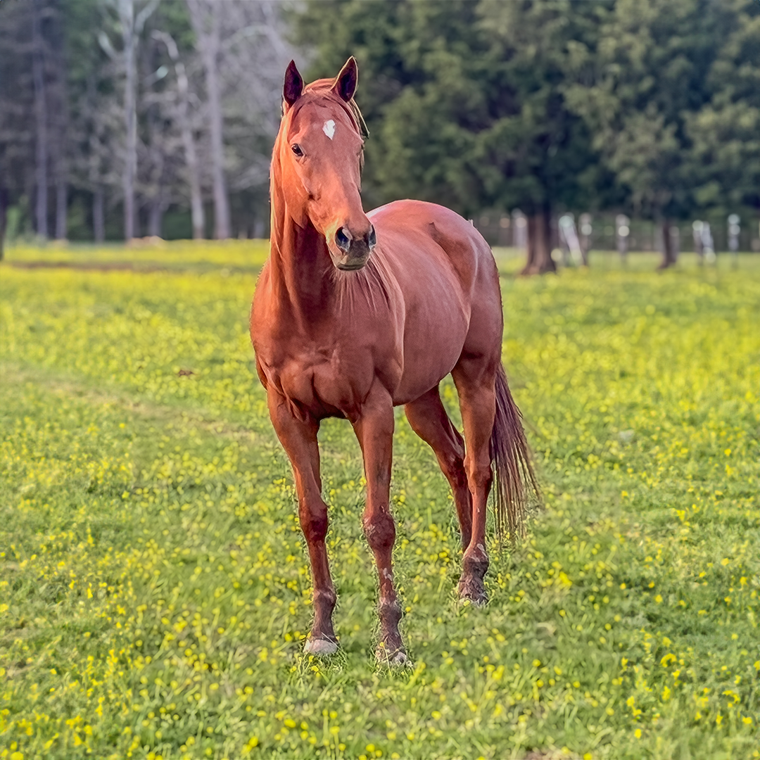 Soon after, Courtney learned that Windcries had a minor injury and offered to foster him at her farm until he was well enough for adoption. After several weeks of care, she officially adopted Windcries in December 2019. His playful yet professional demeanor quickly won her over. “Windcries is just special,” Courtney shared, noting that everyone who meets him notices “his special spark.” He’s the first to run to her in the field and loves playing and teasing his pasture mates.
