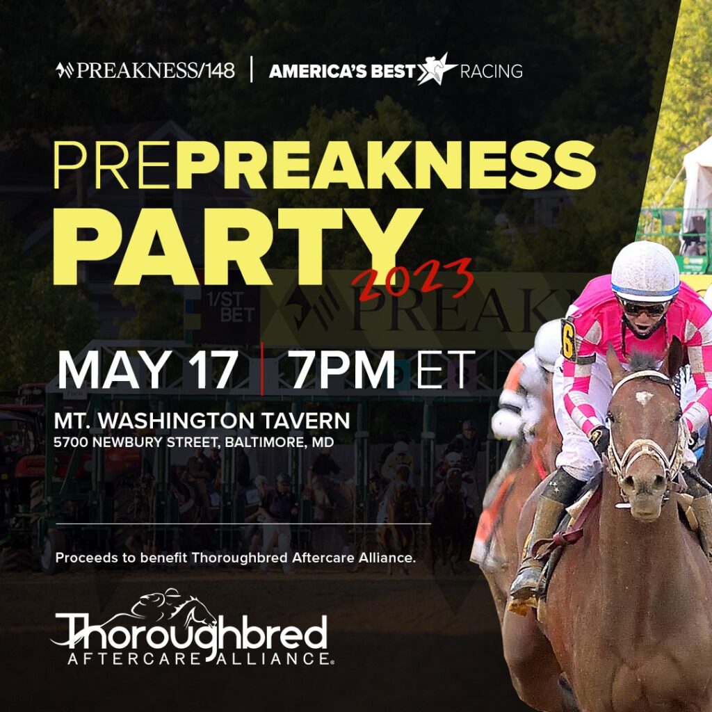 All Posts & News Press Releases Success Stories Aftercare Editorials Supporter Features Inspector Spotlights [wpdreams_ajaxsearchlite] Previous PostNext Post Thoroughbred Aftercare Alliance Announced as Beneficiary of America’s Best Racing’s Pre-Preakness Party Thoroughbred Aftercare Alliance Announced as Beneficiary of America’s Best Racing’s Pre-Preakness Party FOR IMMEDIATE RELEASE April 12, 2023 News Tags: LEXINGTON, KY — The Thoroughbred Aftercare Alliance has once again been named the beneficiary of Preakness’ most anticipated event: America’s Best Racing’s Pre-Preakness Party. The eighth annual Pre-Preakness Party is set to be held on Wednesday, May 17, at the Mt. Washington Tavern in Baltimore, Maryland. Organized by America’s Best Racing, this party has become the most popular Preakness week event that is open to everyone. For just $25 each, tickets include secure access to the Sky Bar (2nd floor) at the Mt. Washington Tavern and the following: One (1) complimentary drink ticket Complimentary snack platters (wings, dips, veggie, cheeses) Access to well-known horse racing personalities and handicapping experts Networking opportunity among racing enthusiasts In addition to an evening of networking, cocktails, and hors d’oeuvres, there will also be a silent auction that benefits the Thoroughbred Aftercare Alliance, an entertaining handicapping challenge with guest analysts, and more fun items to be announced. “We are thrilled to be back for another year to kick off Preakness week with this exciting event,” said Dan Tordjman, manager, Business Development / Sponsorships, America’s Best Racing. “It is a great opportunity to celebrate the week of racing, as well as support an organization that does so much for these horses after their time on the track.” “Thoroughbred Aftercare Alliance is grateful for the opportunity to be a part of this event, and we look forward to seeing fans and racing participants alike join us to commemorate the beginning of an exciting week,” said Stacie Clark-Rogers, operations consultant, Thoroughbred Aftercare Alliance. Tickets are available online at: www.eventbrite.com/e/8th-annual-pre-preakness-party-by-thoroughbred-aftercare-alliance-abr-tickets-596988597967 About Thoroughbred Aftercare Alliance Based in Lexington, KY, Thoroughbred Aftercare Alliance is a 501(c)(3) nonprofit that accredits, inspects, and awards grants to approved aftercare organizations to retrain, retire, and rehome Thoroughbreds using industry-wide funding. Along with continued funding from its original partners Breeders’ Cup, The Jockey Club, and Keeneland Association, Thoroughbred Aftercare Alliance is supported by owners, trainers, breeders, racetracks, aftercare professionals, and other industry members. Since inception in 2012, Thoroughbred Aftercare Alliance has granted more than $31.9 million to accredited aftercare organizations. Currently 86 aftercare organizations comprised of approximately 180 facilities across North America have been granted accreditation. To learn more about Thoroughbred Aftercare Alliance, visit thoroughbredaftercare.org. Contact Samantha Smith 859-224-2882 ssmith@thoroughbredaftercare.org Emily Dresen 352-362-6934 edresen@thoroughbredaftercare.org Share This Release