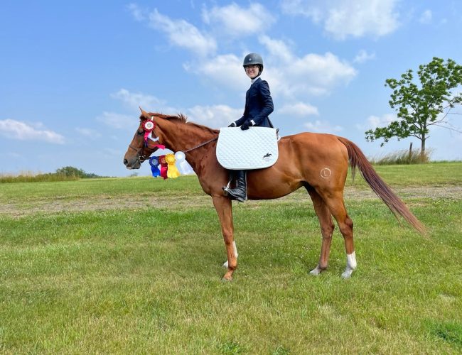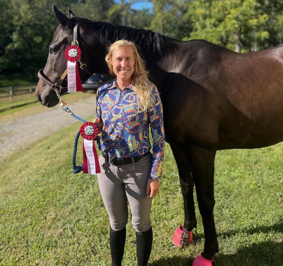 Nina is grateful for her off-the-track-Thoroughbreds (OTTBs) and for the organization TRRAC. For her, the aftercare process of providing retired racehorses with safe homes and a second career is of utmost importance. Her dedication to this cause is evident in her unwavering commitment. Nina’s overarching goal is to secure loving homes for as many of these retired racehorses as possible. In doing so, she aims to highlight the incredible breed and their remarkable versatility. Nina’s commitment to rescuing and rehabilitating retired racehorses demonstrates her dedication to providing these animals with a second chance at a fulfilling life beyond the racetrack. Her partnership with TRRAC is a testament to her passion for helping these horses find loving homes and fulfilling roles in her growing lesson program.