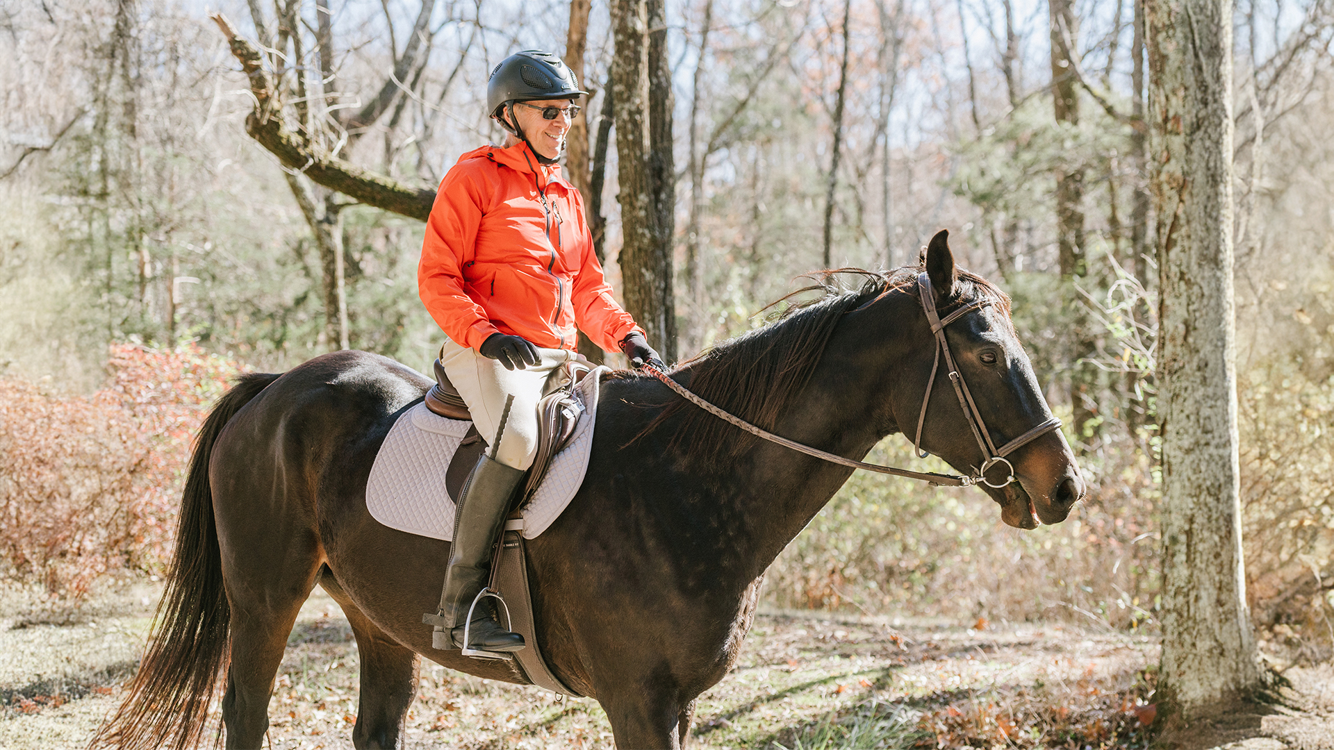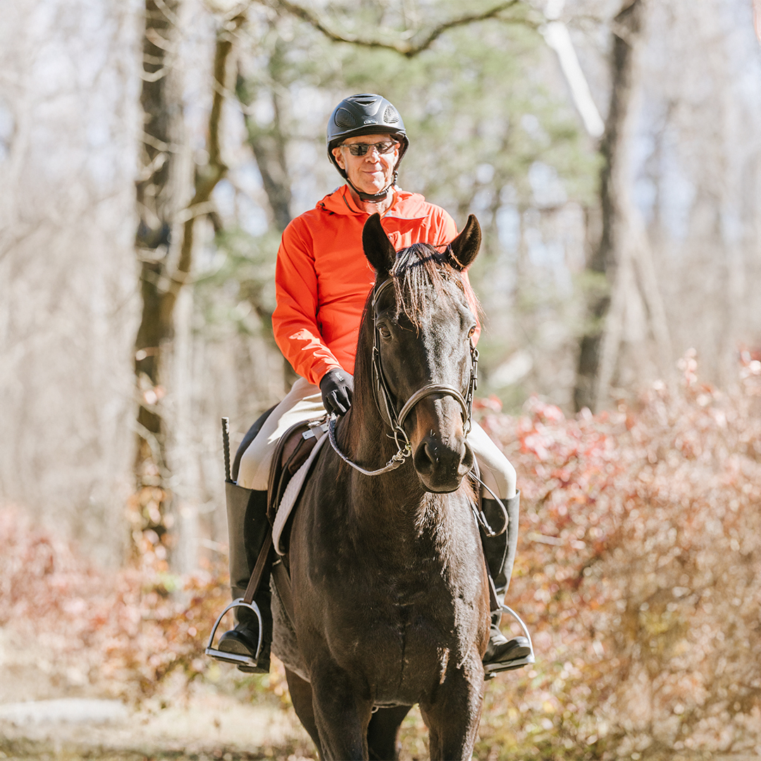 Now more than two years into his retraining, Pep is thriving. He and Al ride two to three times a week, exploring trails, participating in hunter paces, and tackling judged trail rides and obstacle courses.