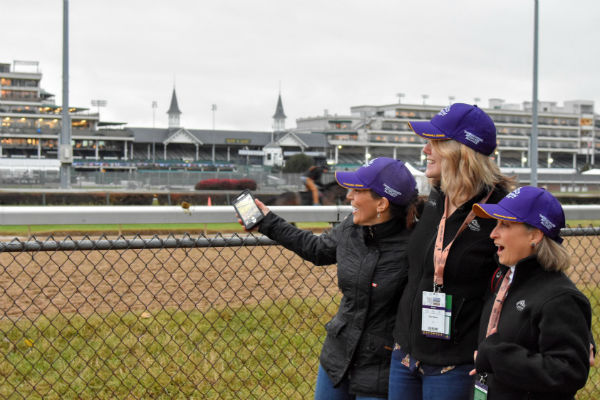The TAA team (left to right: Stacie Clark Rogers, Erin Shea, and Suzie Oldham) on the backside the morning of Breeders’ Cup Friday. Photo: Will Wong