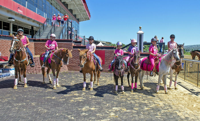 “This is the fifth year for Canter For The Cause and we had 229 riders with Shetland ponies to draft horses to Clydesdales,” Hale said. “Every rider had a big smile across their faces when they came around. We let the riders go into the winner’s circle as well to have their pictures taken. It was a great event for two great charities—Thoroughbred Aftercare Alliance and Susan G. Komen Maryland.