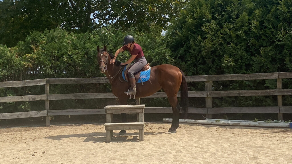 All Posts & News Press Releases Success Stories Aftercare Editorials Retraining Tips Supporter Features Inspector Spotlights Hamburger Toggle Menu [wpdreams_ajaxsearchlite] Previous Post The First Ride The First Ride By: Alexis Arbaugh April 3, 2025 Retraining Tags:MidAtlantic Horse Rescue, Mounting, Mounting Block, Retraining, Retraining Tip, Thoroughbred Aftercare, Thoroughbred Aftercare Alliance Aint Wasting Time’ first ride The first ride on a recently retired Thoroughbred racehorse can be quite daunting, especially for those new to it. Even experienced riders might find it intimidating. These horses are fresh off the racetrack, often highly muscled, fit, and powerful—qualities that make them incredibly fast and strong but also a bit overwhelming for immediate riding. Most owners give their retired racehorses a break before starting any retraining. This downtime allows the horse to relax, adjust to its new environment, and lose some of that racetrack muscle. It is crucial for starting the retraining process with a clean slate. Thoroughbred Aftercare Alliance had the pleasure of speaking with Beverly Strauss, one of the co-founders of MidAtlantic Horse Rescue in Chesapeake City, Maryland, about the first ride off the racetrack. MidAtlantic, a Thoroughbred Aftercare Alliance-accredited organization, cares for more than 45 horses across their main facility and satellite farms. They work closely with racetracks to take horses directly off the track and rescue them from auctions and feed lots. Once the horses arrive, they are carefully evaluated for rideability, trained, and placed into adoptive homes. In addition to her aftercare work, Bev and her husband run a small Thoroughbred racing business at Delaware Park. With her extensive knowledge both on and off the racetrack, Bev is a highly skilled horsewoman who ensures the best outcomes for all her horses. “One of the great things about OTTBs is the solid foundation that most of them have,” Bev wrote. Many are already well-versed in walking, jogging, cantering, galloping, and automatically changing leads, both independently and in groups. These young Thoroughbreds are exposed to a lot of commotion during early morning workouts and race days, learning to stay relaxed even in busy environments. Whether they race for ten years or not at all, they come away highly desensitized. There are a few key similarities between racehorse riding and sport horse riding. In both disciplines, riders must have excellent balance, whether perched atop the horse or with their legs securely wrapped around its barrel, and maintain a quiet, steady hand. Bev points out that the mindset is also often the same—if a horse gets “spicy,” the rider laughs it off and pushes the horse forward, making sure not to let the horse get away with anything. Just like training racehorses, there are various approaches to retraining them. Some trainers prefer groundwork, while others, like Bev and her team at MidAtlantic, prefer to hop right on without any groundwork. However, before riding, they ensure the horse is sound, eats well, and is maintaining a healthy weight—key factors that indicate the horse is ready to start work. Much of the tack used on the racetrack is similar to what you’ll use when retraining. Since this will be a new experience for the horse, keeping familiar elements can help them feel more at ease. At MidAtlantic, they prefer to start all their horses in a D snaffle with a lozenge in the middle. The D snaffle is the same as on the track. On the track, D snaffles typically have one joint, while off the track, they often have two joints. Both bits are gentle, but double-jointed snaffles are the softest, making them ideal for horses starting a new career. At MidAtlantic, they also use a very loose running martingale on all their horses, as it’s similar to a yoke and rings. A running martingale provides more control by applying pressure and preventing the horse from raising its head too high. While a yoke with rings is typically made of nylon rather than leather, it serves the same purpose. Although English and jockey saddles differ in size, they generally sit in the same spot on the horse’s back, so there is little difference in how it makes the horse feel. Aint Wasting Time’s first ride Some trainers prefer the intimacy of working in a round pen, but Bev has a different approach. “I personally don’t like riding in a round pen because there isn’t much room, and it’s hard for the horse to balance, always being on a turn,” she explains. She also points out the limited space to regain control if the horse becomes unruly. Instead, Bev starts all their horses in an arena, which offers more space for free movement and helps the horse feel less confined. Bev also rarely lunges a horse before the first ride, only “if the horse acts girthy or uncomfortable, but only maybe one or two times out of over 100 first rides.” MidAtlantic places a strong emphasis on using voice cues during the first few rides. Depending on how much and what kind of training the horse had previously, their understanding of leg pressure will vary. For instance, a horse that was hacked as a youngster might already have an idea of what leg pressure means. “Smooching or clucking helps while they learn what the leg means,” Bev writes. Another common issue is the horse’s ability to steer, which also depends on their prior training. For example, a horse that was long-lined will typically have better steering skills. The mounting block is often a foreign object to a racehorse, and it can take time for the horse to get used to it. At MidAtlantic, they use a large, three-step wooden block positioned on a curve, away from the wall. This setup allows the horse to be placed between the block and the fence, creating a barrier to keep the horse still. Some horses are unfazed by the block, while others might be wary and avoid it. “In those cases, we’ll sit on the bloc