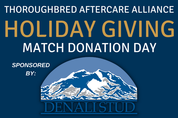 As part of the Thoroughbred Aftercare Alliance (TAA)’s month-long Holiday Giving Campaign, Denali Stud has pledged to match all donations up to $5,000 made to the TAA on Dec. 1, 2022. Denali Stud has contributed funds to the TAA since 2013 and continues to be an aftercare ambassador, representing responsible breeding and ownership within the racing industry.