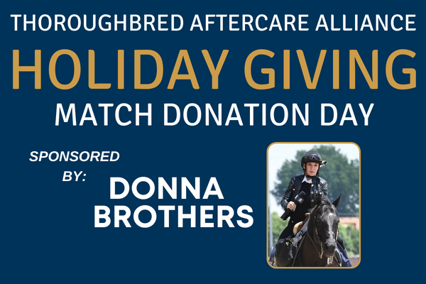 Throughout the end of the year, the Thoroughbred Aftercare Alliance will continue to host special one-day only donation matches with some of horse racing’s biggest names. For more chances to double your donation, watch the TAA’s social media, website, and industry advertisements for the next Holiday Giving match day announcement.