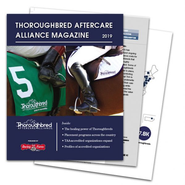 This year’s edition features 96 colored pages, highlighting all 70 TAA-accredited organizations and also includes in-depth articles about aftercare networks across the country, the healing power of thoroughbreds, and expansion of TAA-accredited organizations. Further, the 2019 issue features a letter from TAA President John Phillips, a map of TAA-accredited organizations and a list of TAA’s industry stakeholders.