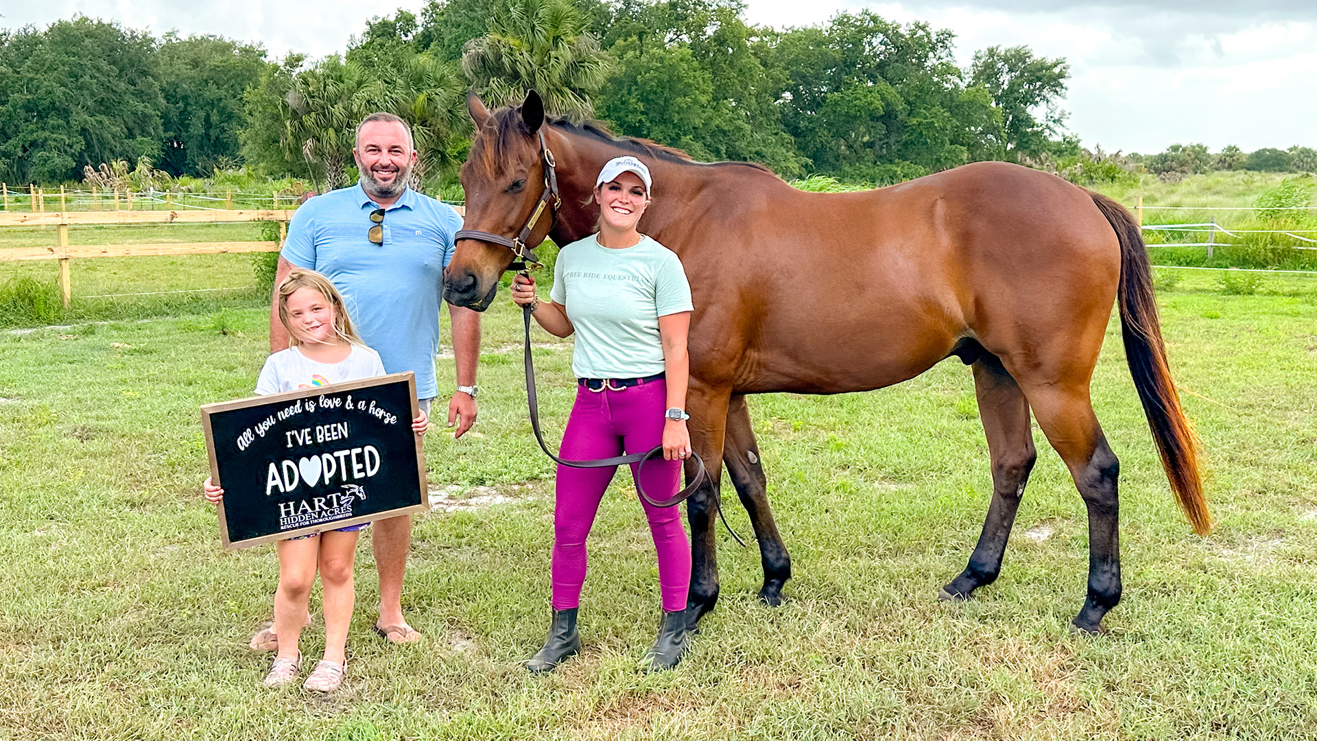 Paige and her family were filled with love, joy, and excitement when they adopted Gael Power. From competing on the racetrack to winning ribbons in the jumping ring, Gael Power fully represents an OTTB success story. Credit: Kay Johnson