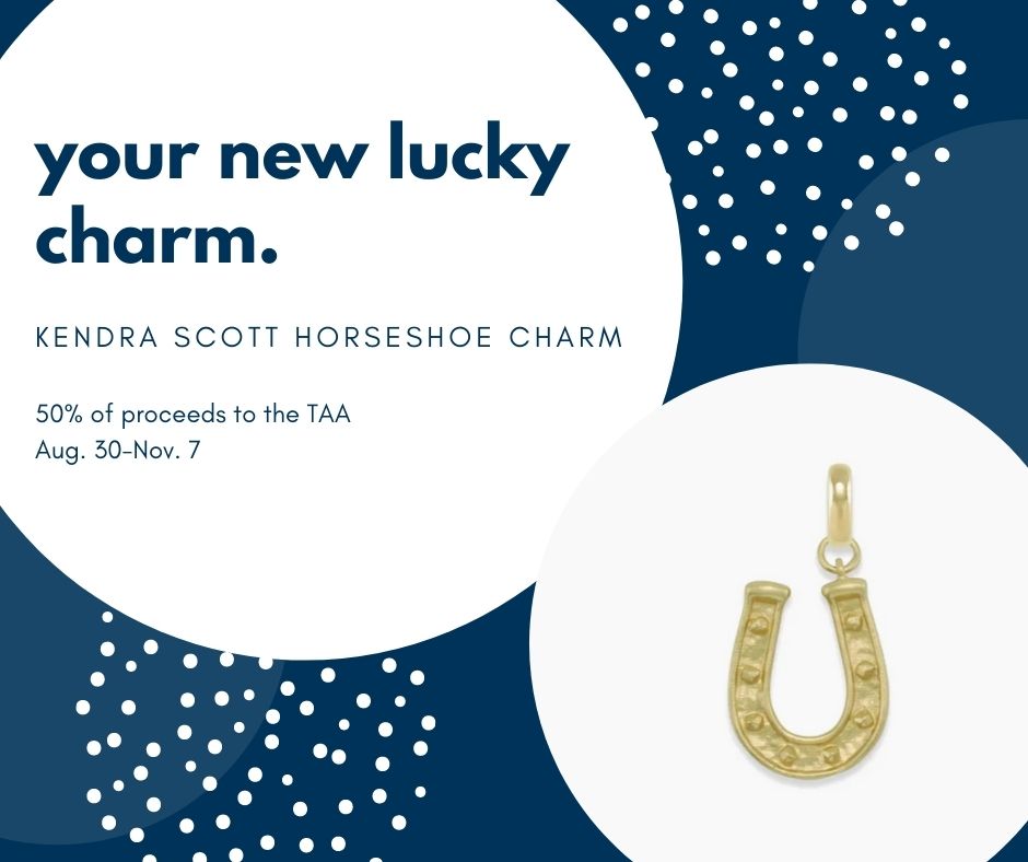 Fashion and lifestyle brand Kendra Scott will offer 50% of proceeds from sales of its Horseshoe Charm to benefit the Thoroughbred Aftercare Alliance Aug. 30 through Nov. 7.