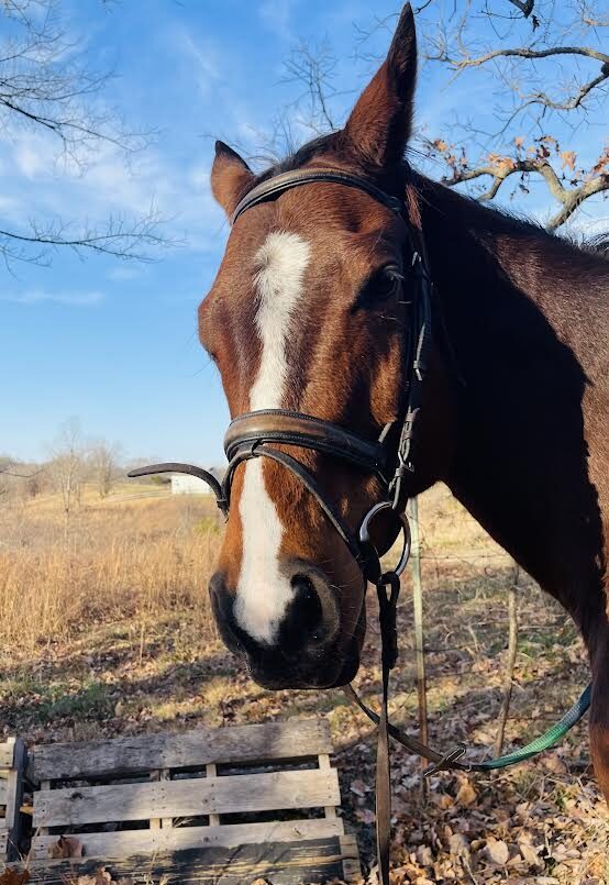 Kiss Him Goodbye is a 2015 bay Thoroughbred gelding who had 30 starts and earned a total of $62,709 during his four-year racing career. Upon arriving at Horse and Hound, Michelle learned that “Kissy” had undergone some Monty Roberts training with certified trainer Jamie Jennings. Monty Roberts’ program focuses on natural horsemanship principles, educating individuals about horse behavior and fostering a collaborative partnership between horse and owner.