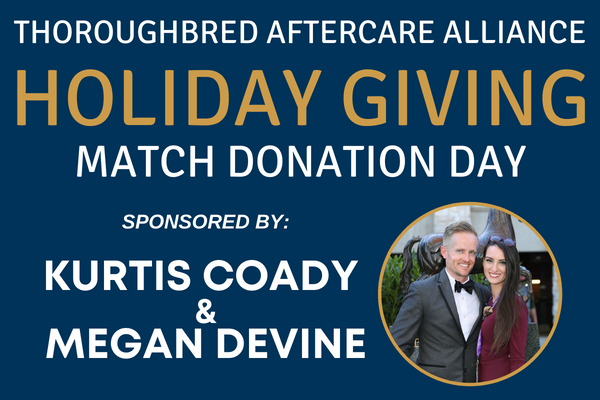 Throughout the end of the year, the Thoroughbred Aftercare Alliance will continue to host special one-day only donation matches with some of horse racing’s biggest names. For more chances to double your donation, watch the TAA’s social media, website, and industry advertisements for the next Holiday Giving match day announcement.