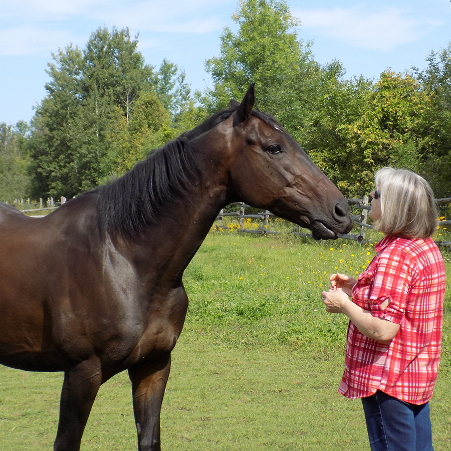 While Money Talks was assessing his new domain at LongRun, adult amateur Jillian Wainwright was beginning a new journey of her own. “My Quarter Horse mare was well into her twenties and I had been looking for a new horse for some time,” she said. “I saw many horses, but nothing about them said this is ‘The One’.” When a friend suggested that she take a look at an off track Thoroughbred and pointed her in LongRun’s direction, Wainwright was hesitant to say the least. “My first thought was ‘That’s insane!’ I could never ride a racehorse! I knew nothing about Thoroughbreds or racing,” she recalled. “However, I went onto the website and knew instantly that there was something special about these horses. Their gentle, soft eyes caught my attention right away.”