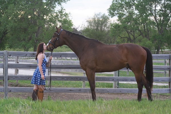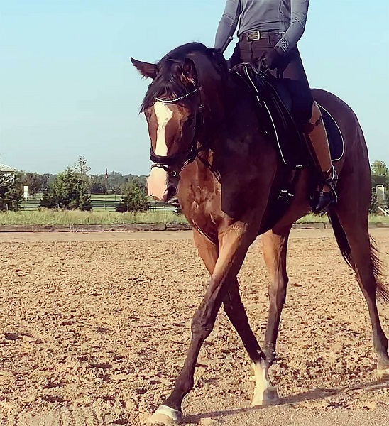 “Lateral work comes naturally to (“Getty”) and he has a lovely, reaching leg-yield,” she said. “Also, he is so, so smart, learning at an unprecedented rate, sometimes learning and retaining something new in only one ride. We have dabbled with flying changes, which will definitely be something that comes easy to him, we have shown USEF and USDF recognized shows and received 8’s for that beautiful canter I fell in love with in his sales video. Now I can honestly say my goal is to ride this horse as far as he can take me. He is so smart, talented, and willing that I am very optimistic about our future together.”