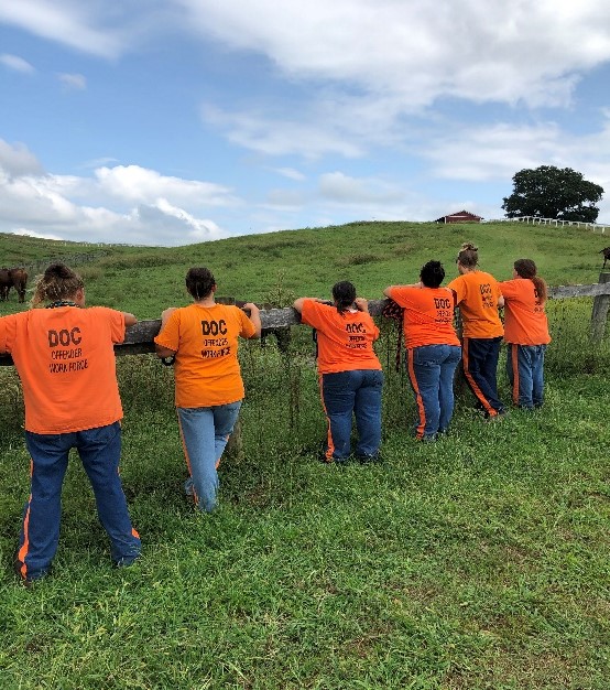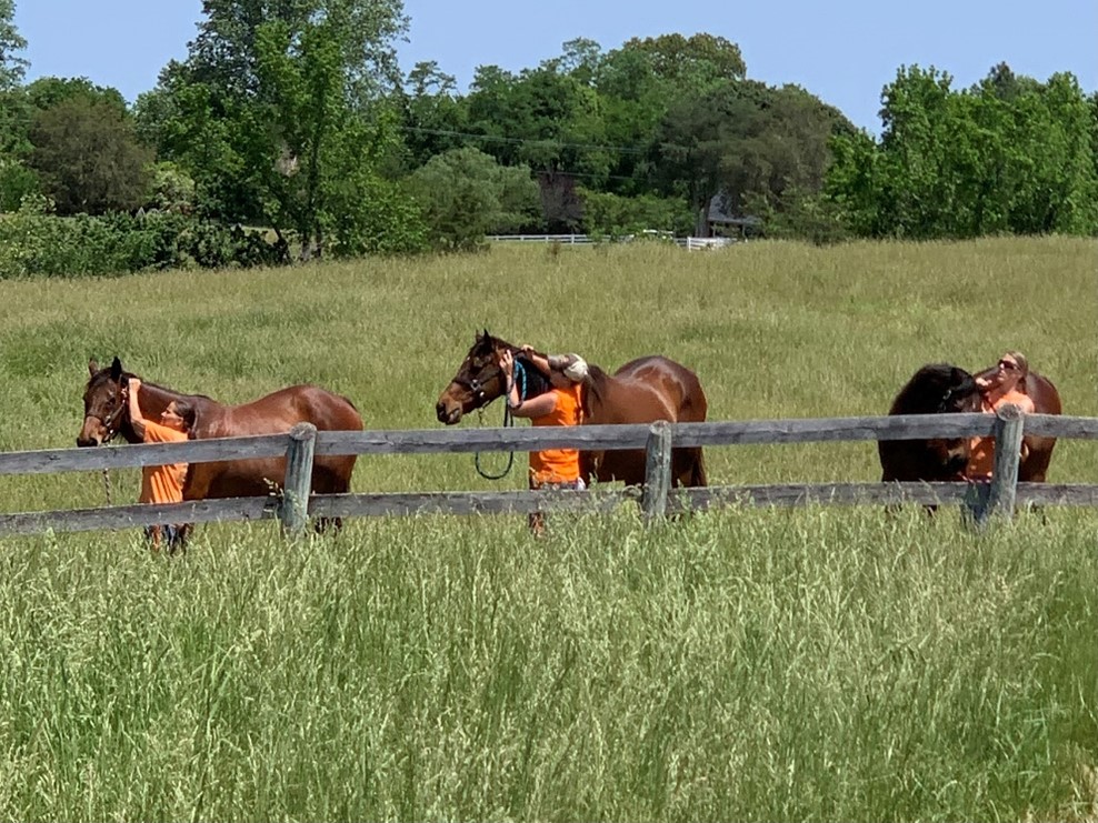 The James River Horse Foundation operates in a private-public partnership with the Virginia Department of Corrections. We are a non-profit organization whose mission is to provide care and sanctuary for retired Thoroughbred horses, and we are hosted on state property where we work directly with female inmates to provide care for our horses under the guidance of our program director. An enormous portion of our program is teaching job skills as well as life skills to the inmates, with the purpose of affording them greater opportunities to get on their feet upon release from prison. Along with daily herd care such as feeding, grooming, and health care, the inmates are responsible for pasture and barn maintenance as well as aspects of management like creating feed orders and barn schedules for farrier, dental, and vet care. In our 9-month program, the inmates complete an in-depth curriculum that includes everything from a basic history of horses and their relationship to mankind to horse anatomy and barn management.