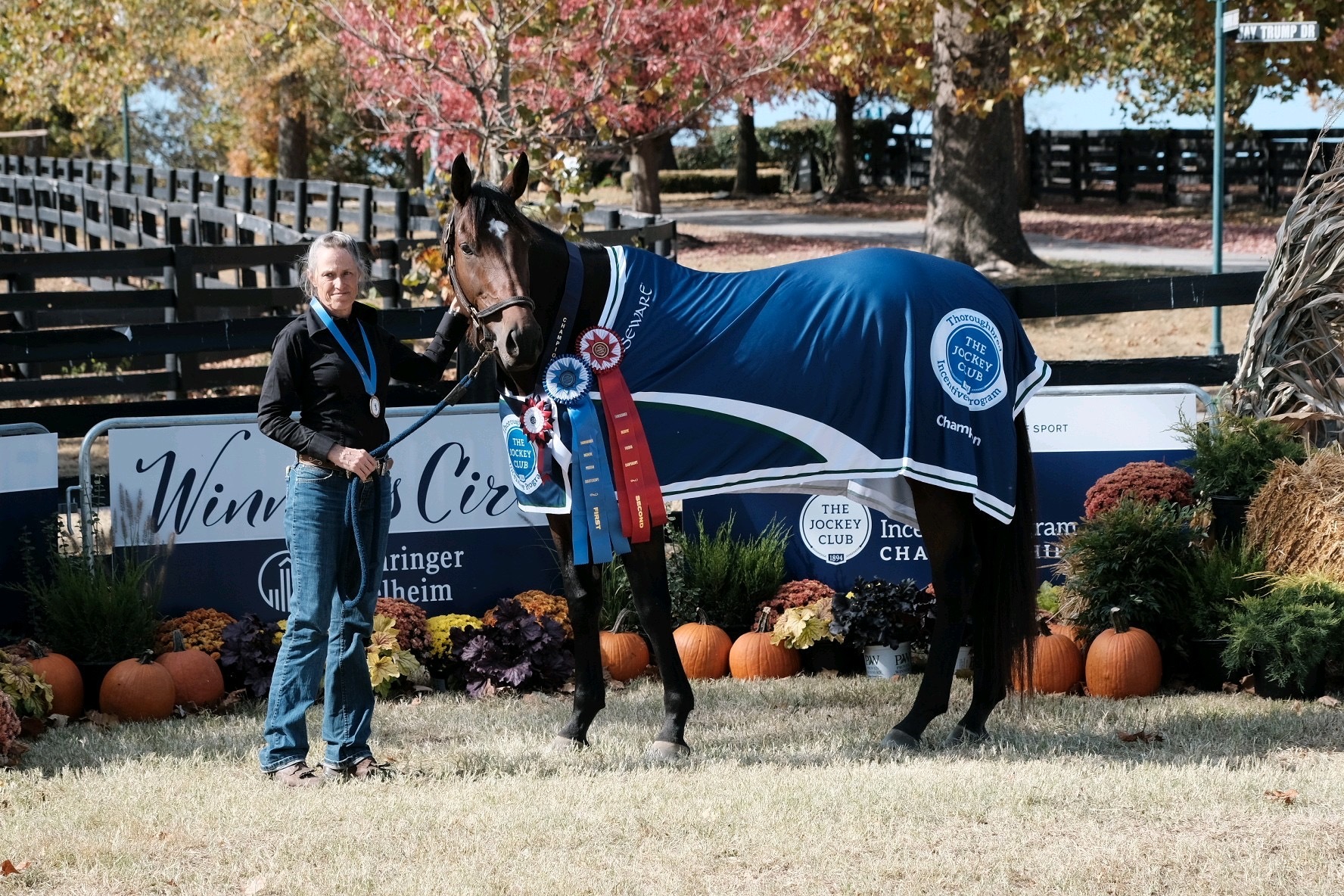 Bred in Kentucky by Castlepark Farm, John Karakourtis, and AF Thoroughbreds, Union Charm made seven careers starts in New York and Maryland, never breaking his maiden. The half-brother to stakes winner Charming Vixen was retired after three starts under owner/trainer Horacio De Paz to TAA-accredited MidAtlantic Horse Rescue by way of Beyond the Wire. After seven months at the aftercare organization, Union Charm was adopted by Eileen Johnson. On behalf of Johnson, Alyssa Kelly competed with Union Charm in Show Hunters and Show Jumpers at the Thoroughbred Makeover, earning the fifth and first-place positions after the preliminary round in show Hunters and Jumpers, respectively.