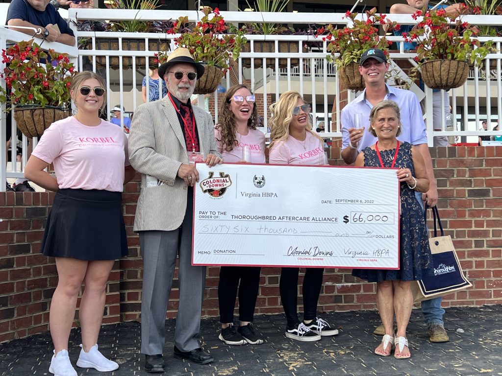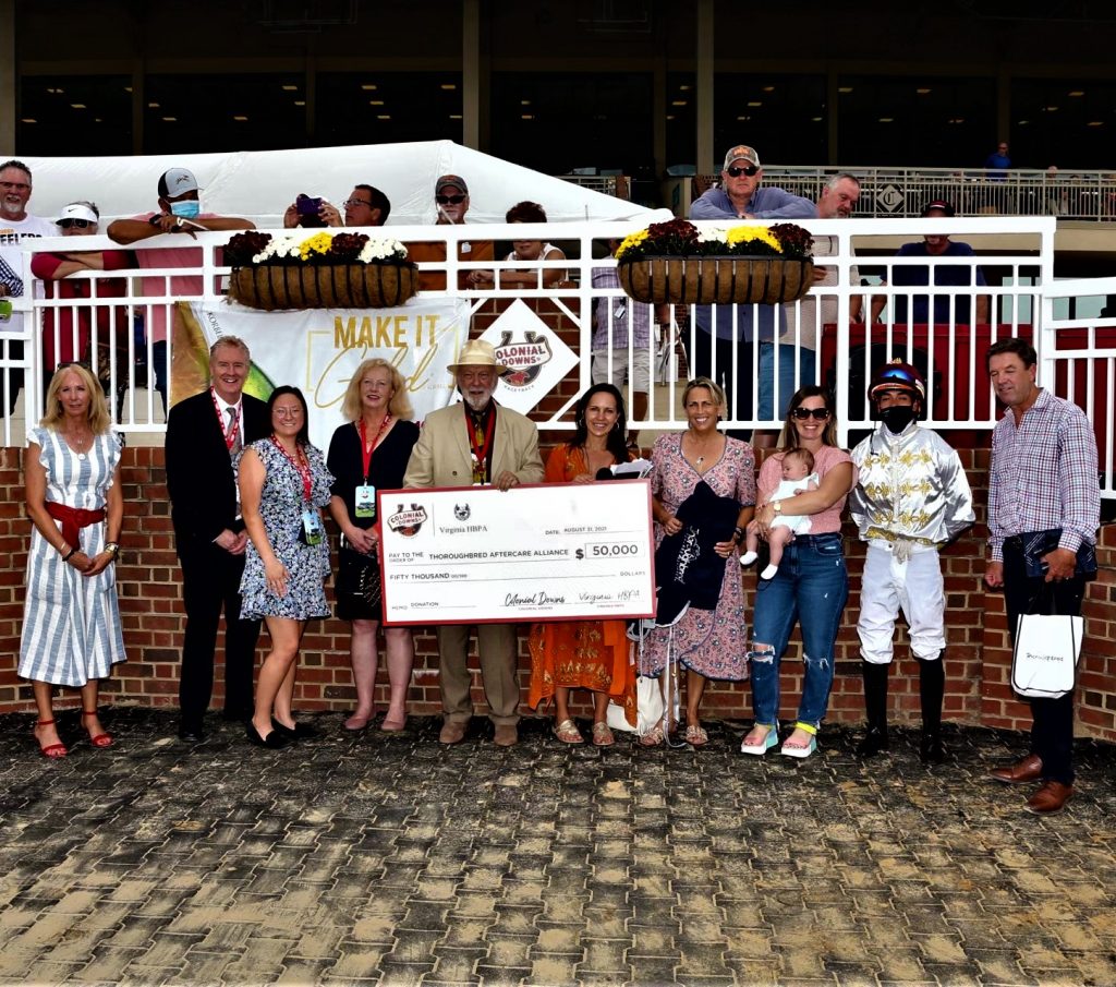 Colonial Downs and the Virginia Horsemen’s Benevolent and Protective Association have each pledged $15 per start at the upcoming Colonial Downs meet to the Thoroughbred Aftercare Alliance.