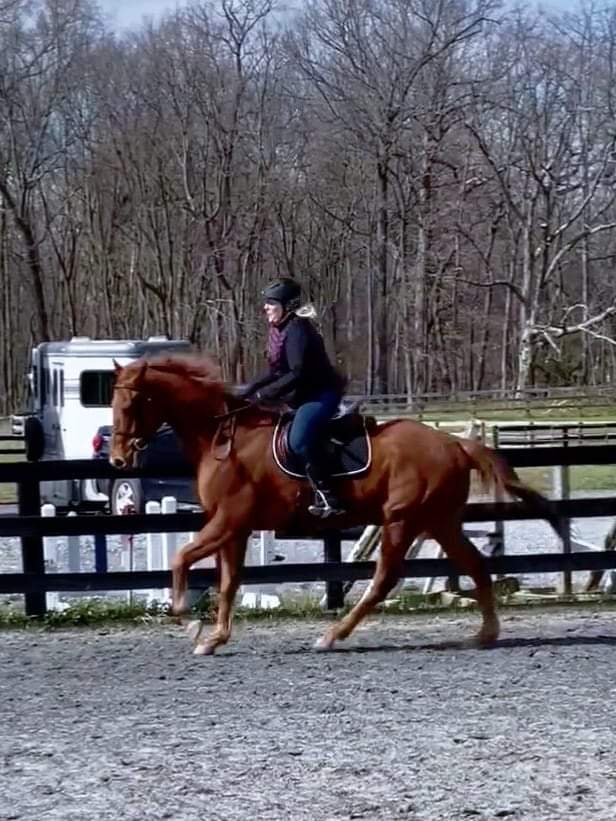 Laura Otten had previously owned an off-track Thoroughbred and always intended to return to riding and horse ownership. Over the years, she had followed several aftercare organizations, hoping to adopt another Thoroughbred someday. When the COVID pandemic happened, it unexpectedly accelerated those plans. Laura began actively searching for her next horse, specifically a gelding suited for pleasure riding and low-level Eventing. “I knew I wanted a gelding and was willing to work with professional trainers and had no plans to resell, ever!” she shared.