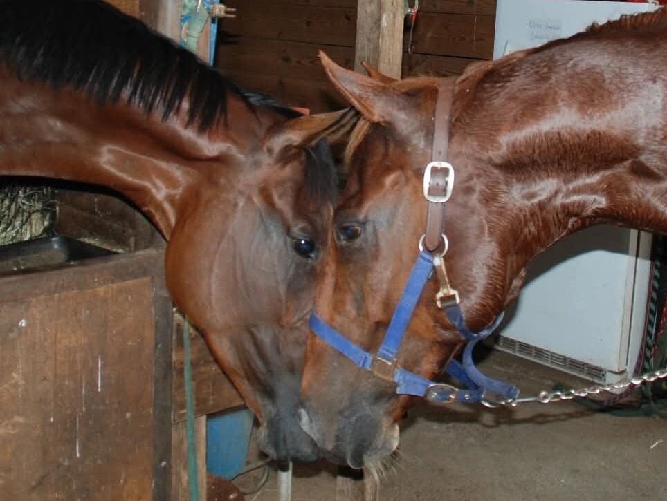 Maintaining a connection to Rascal’s racing history has become an important part of his journey. Laura built a friendship with the woman who bred, trained, and raced him, and his former connections often attend competitions when possible. That relationship eventually led to the arrival of Rascal’s full brother, Harpersgonefishing, who retired from racing this past summer and joined Laura’s farm to begin retraining for Eventing. “She has become a friend and asked us to take Harper when he finished racing this past summer,” Laura shared. She also captured a special moment: “Here is a picture of the brothers meeting for the first time. Harper on the left and Rascal on the right. Love them both!”