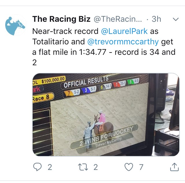 “I took a job for The Maryland Jockey Club in 2017 and started a string here with trainer Kieron Magee,” McElwee said. “Kieron’s wife, Kelly called me one day about a horse she liked that was entered the next day. I saw he ran in New York and was going short but when they brought him to Maryland, they tried him long and he seemed to like that better. At the time I didn’t have any horses so I figured why not, this will be fun. The day I claimed him he won and I was so excited to see the progression he was making.”