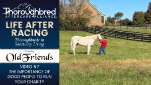 The 501(c)(3) nonprofit Thoroughbred Aftercare Alliance accredits, inspects, and awards grants to approved aftercare organizations to retrain, retire, and rehome Thoroughbreds using industry-wide funding.